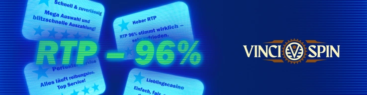Das Online-Casino VinciSpin ist ein Ort, an dem Spannung auf Qualität trifft und die Spieler nicht nur Vergnügen, sondern auch echte Gewinnchancen haben. Wir werden Sie nicht mit Märchen über "Millionen in einer Minute" füttern – hier ist alles fair: transparente Konditionen, faire RTP, lizenzierte Anbieter und ständige Kundenbetreuung.